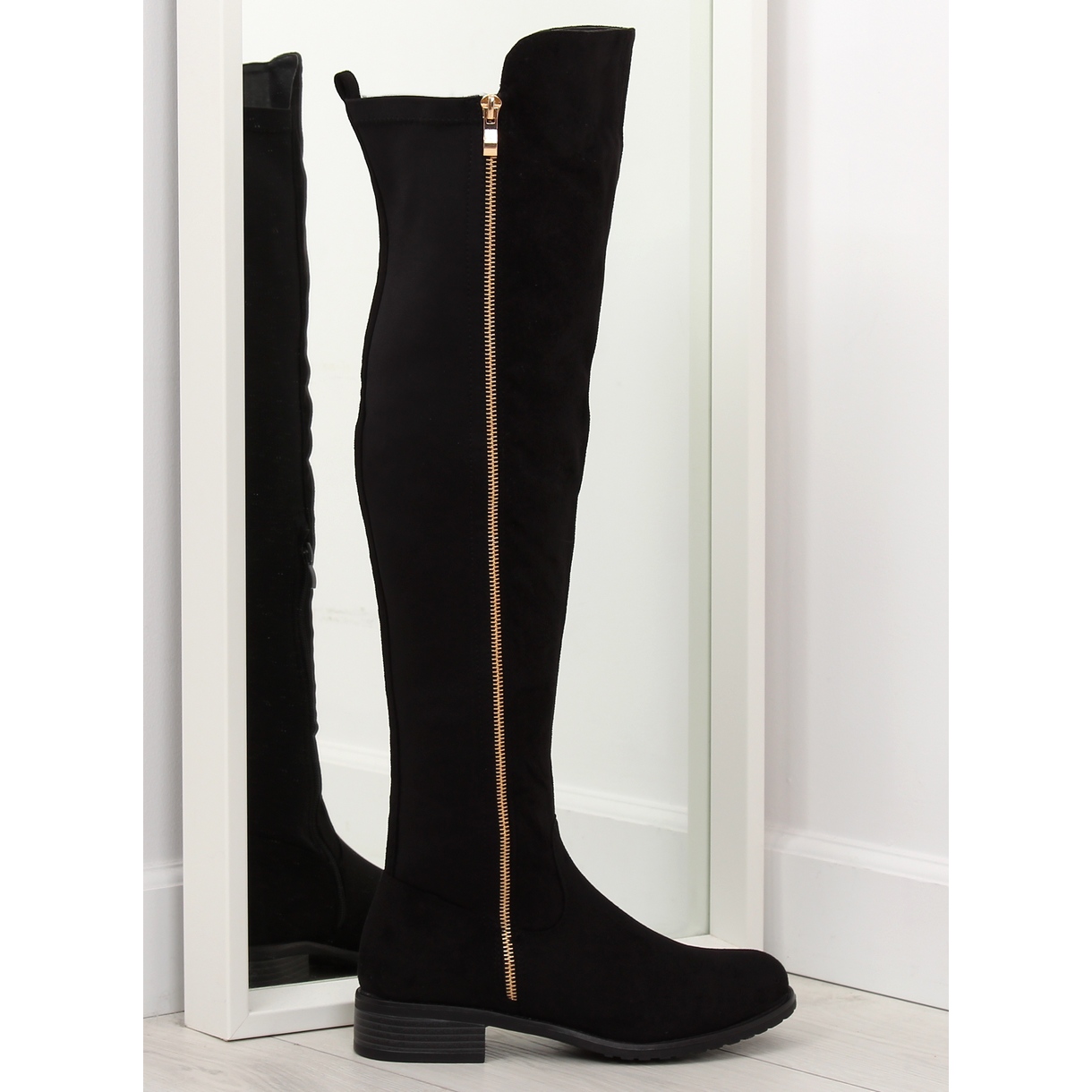 Stehenní vysoké kozačky s pružným svrškem - černé, elegantní a pohodlné