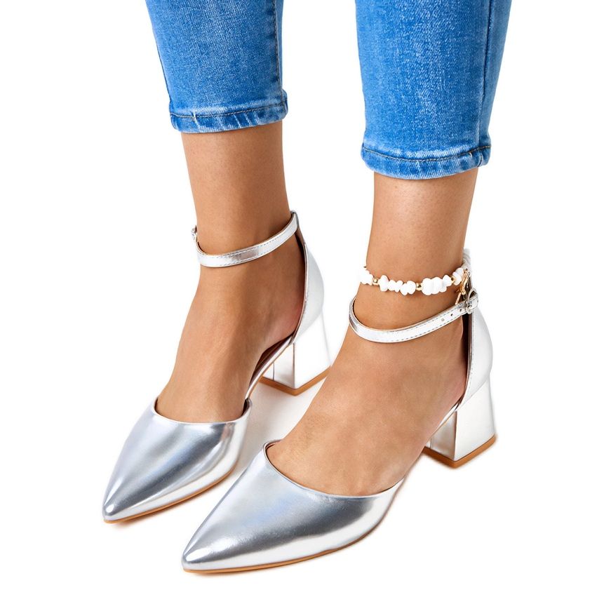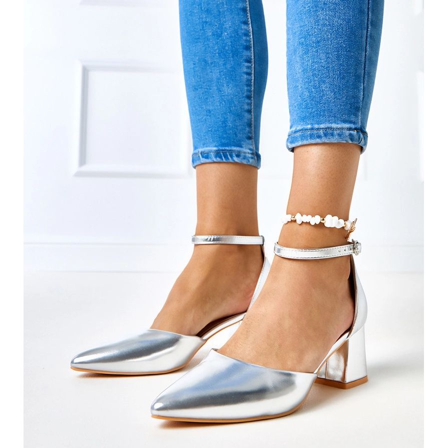 Stříbrná barva dává nádheru jakékoli stylizace a špičatý nos jim dává velmi ženský charakter. Díky výšce paty 6 cm jsou čerpadla ideální pro elegantní příležitosti i pro denní kombinace. Upevňování spony kolem kotníku zajišťuje stabilitu a zdůrazňuje nohy a hnědá plastová podešev je stylová i praktická.