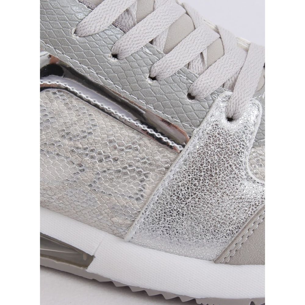 Objevte mimořádný styl a pohodlí s dámskými stříbrnými sportovními botami BL206 Silver. Tyto šněrovací tenisky jsou dokonalou kombinací klasiky a moderních trendů, které jistě upoutají pozornost. Vyznačují se průsvitnou podrážkou a módními metalickými vsadkami a texturou připomínající hadí kůži, která z nich dělá absolutní hit v každém šatníku.