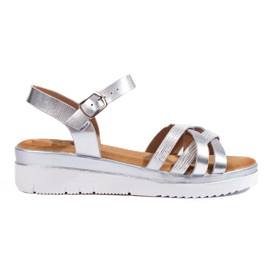 SHELOVET Stříbrné dámské sandály na klínku Shelovet stříbrný