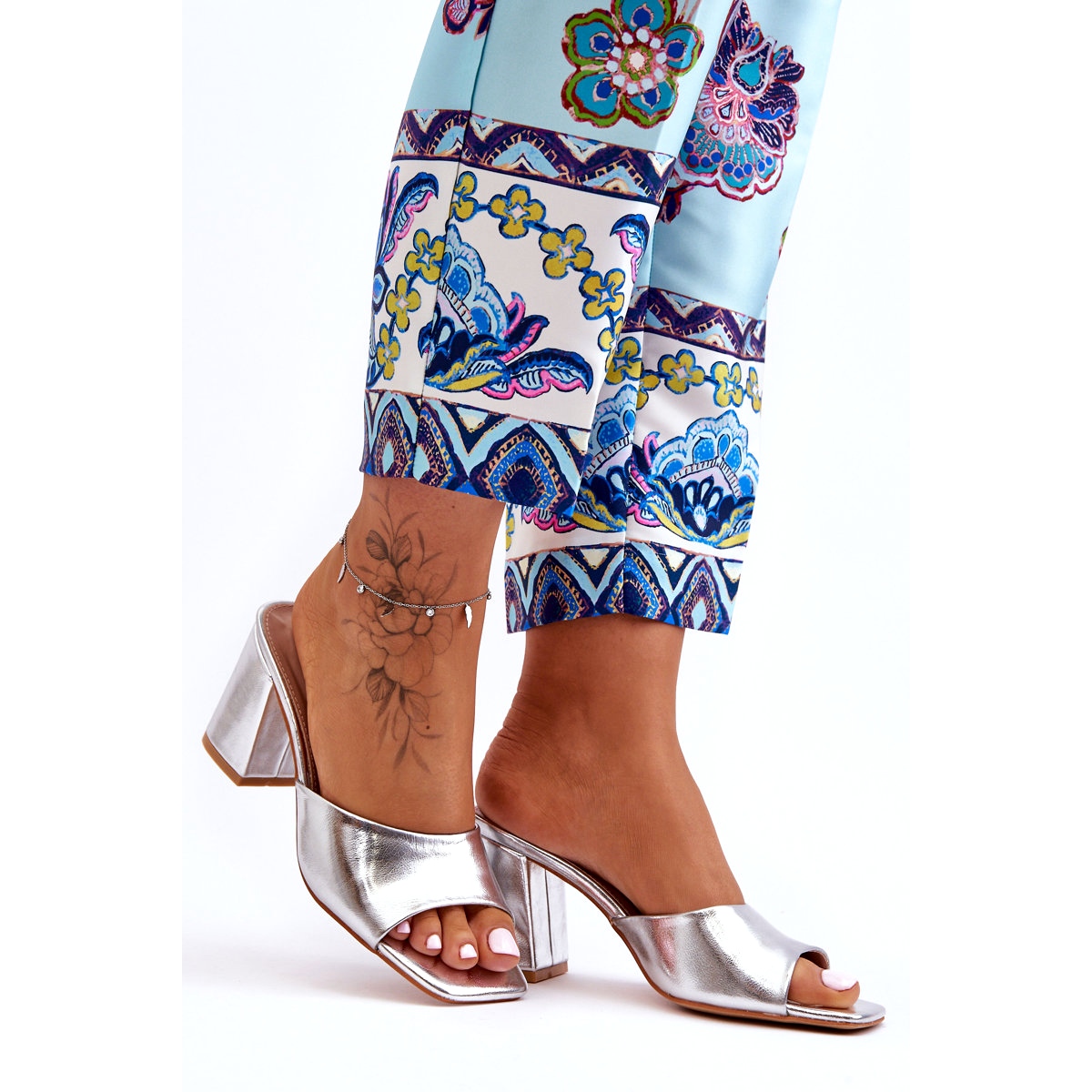 Objevte komfort a styl s kovovými klapkami podobnými ekologickým kotčím ve stříbře. Tyto elegantní žabky, vyrobené z ekologické kůže, vynikají s otevřeným čtvercovým nosem, který jim dává moderní charakter. Ekologická kožená vložka zajišťuje pohodlí a stabilní pata ve formě 8 cm vysokého příspěvku přidává nejen styl, ale také zdůrazňuje postavu.