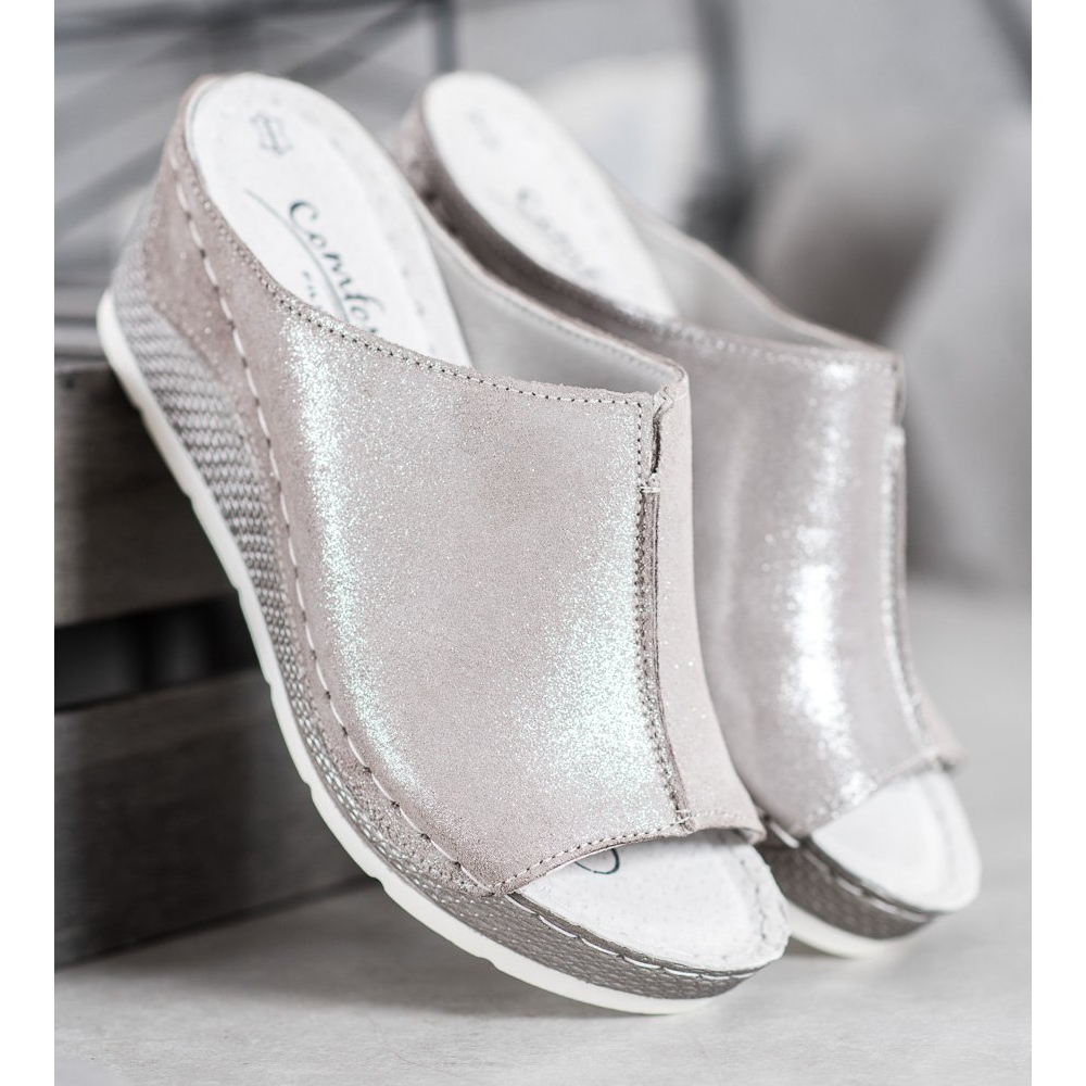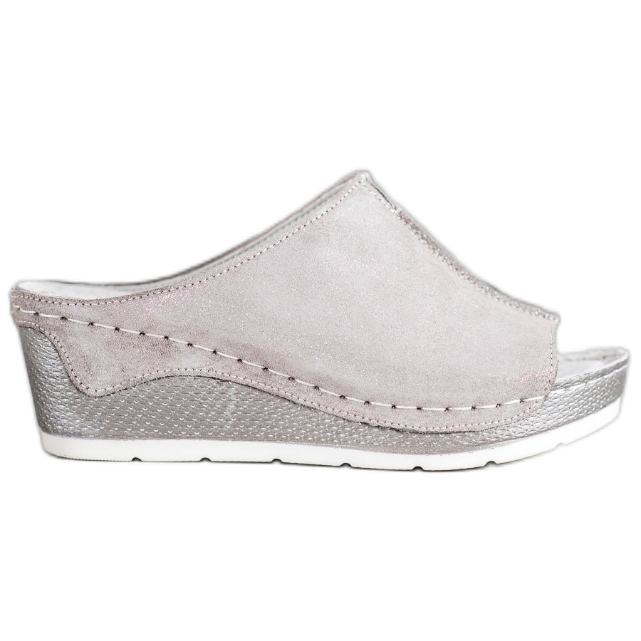 Filippo Filippo Stříbrné kožené pantofle šedá