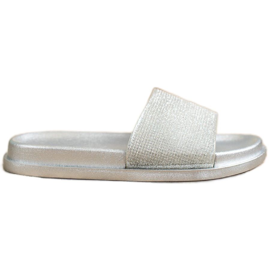Podrobnosti: SHELOVET Stříbrné lesklé pantofle stříbro