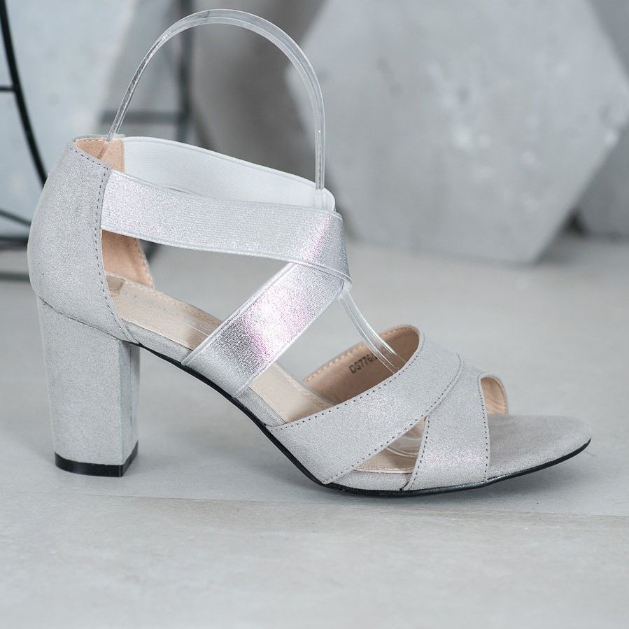 Tyto sandály jsou vyrobeny ze stříbrného materiálu imitujícího kůži a potěší svým jemným leskem. Přední část bot zdobí dva zkřížené pruhy materiálu, které elegantně odhalují chodidla. Navíc je na zápěstí ozdobný motiv z lesklého materiálu, který zdůrazňuje jejich jedinečný charakter.