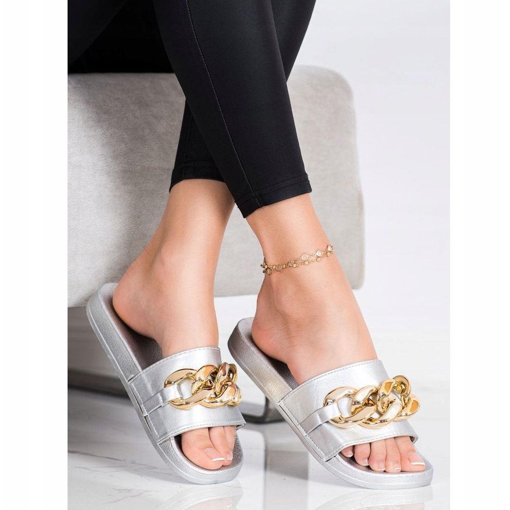 Podrobnosti: SHELOVET Stříbrné pantofle s ozdobou stříbro