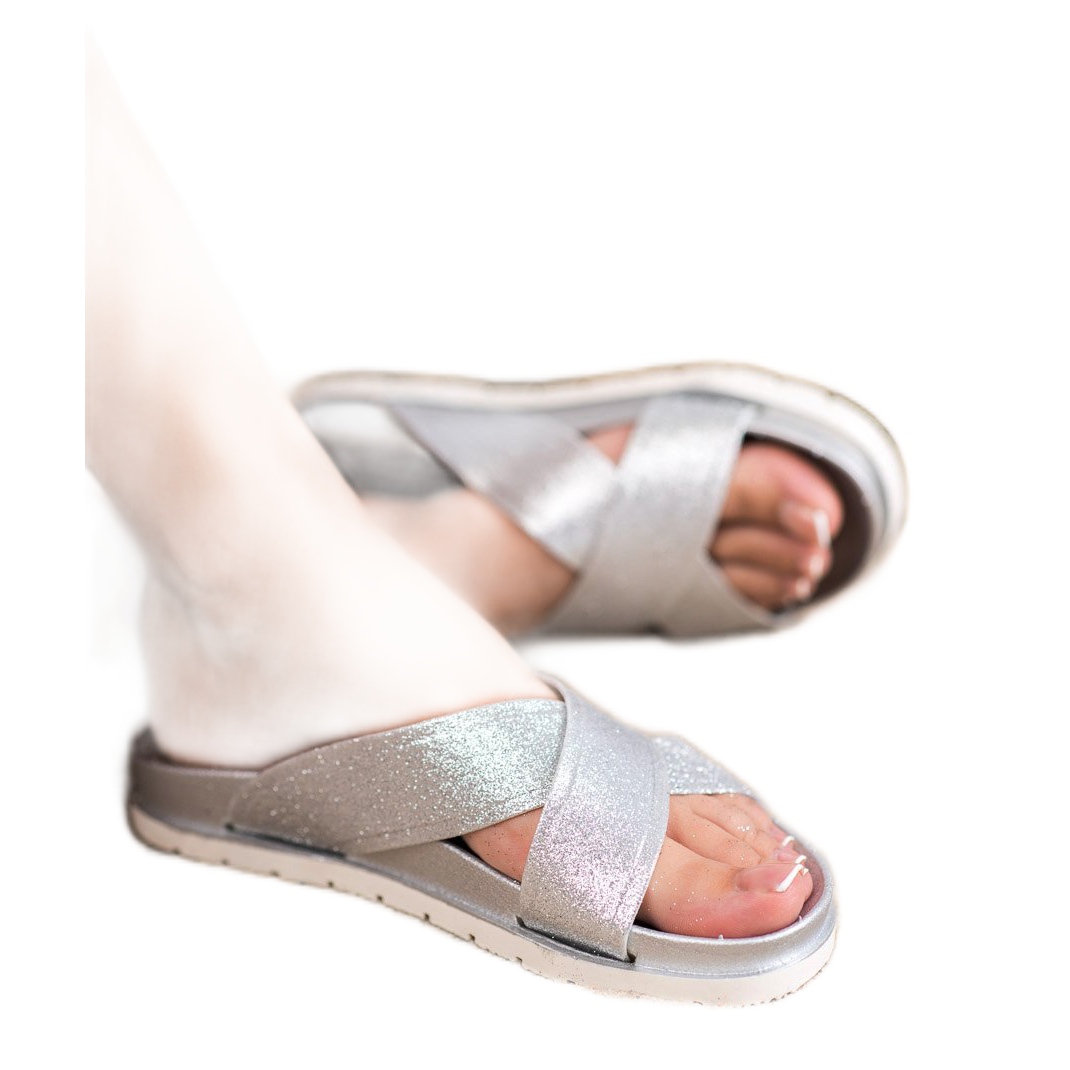 Emaks Emaks Stříbrné pantofle se třpytkami šedá