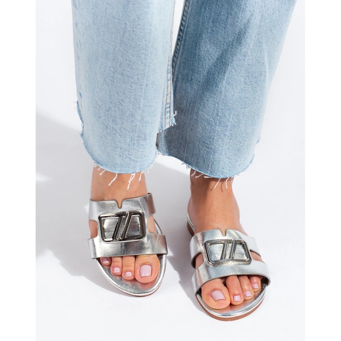 SHELOVET Stříbrné ploché sandály s ozdobou Shelovet stříbrný