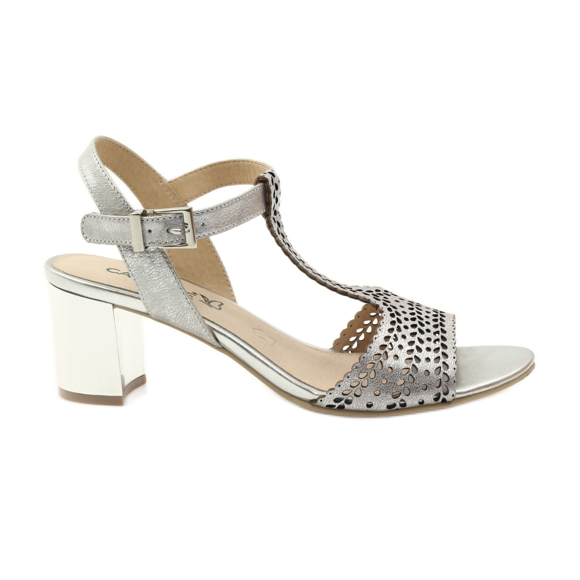 Prolamované sandály Caprice 28301 v módním stříbrno-šedém odstínu jsou nabídkou pro ženy, které oceňují eleganci a pohodlí. Tyto klasické sandály vyrobené z přírodní kůže kombinují vysokou kvalitu s jedinečným stylem. Jejich 6,5centimetrový metalizovaný podpatek dodává půvab a zdůrazňuje postavu a zároveň zajišťuje stabilitu při chůzi.