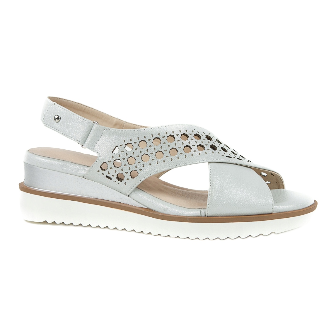 Objevte eleganci a pohodlí v jednom z nejnovějších modelů sandálů od M.Daszyński - stříbrné sandály na klínku Daszyński 1838 s šedo-metalickou úpravou. Tyto poutavé sandály nesmí chybět v šatníku každé ženy, která oceňuje styl a klasickou módu.