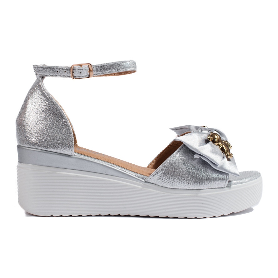 - Model: Stříbrné sandály na klínku s medvídkem