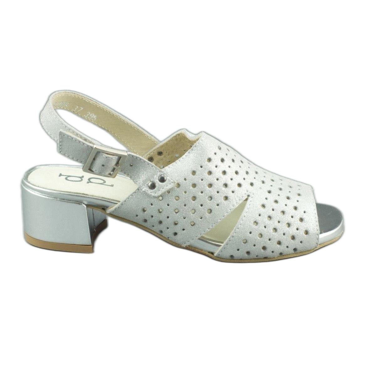Stříbrné sandály Dolce Pietro 2084 na vysokém podpatku jsou ideální volbou pro ženy, které si cení elegance i pohodlí. Tyto prolamované boty vyrobené z vysoce kvalitní přírodní kůže zaručují nejen skvělý vzhled, ale také přiměřené proudění vzduchu, což je v horkých dnech nesmírně důležité. Otevřené špičky a paty poskytují pohodlí a styl a zapínání na přezku umožňuje dokonalé přizpůsobení noze.