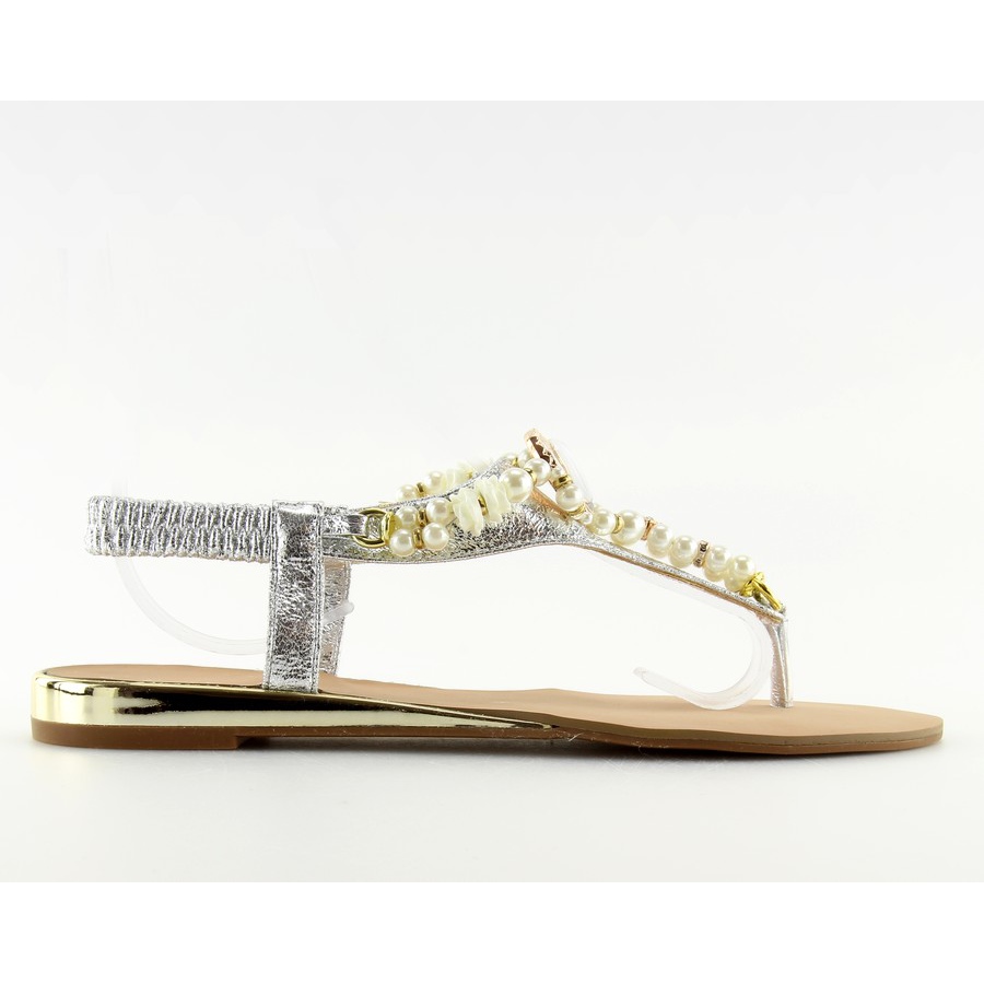 Inna marka Stříbrné sandály s perlami D580 stříbro šedá