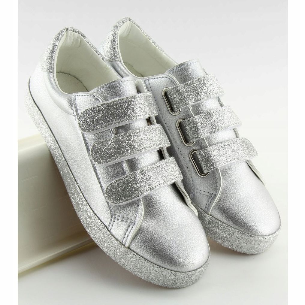 Inna marka Stříbrné tenisky se zapínáním na suchý zip XL10P Silver šedá žlutá