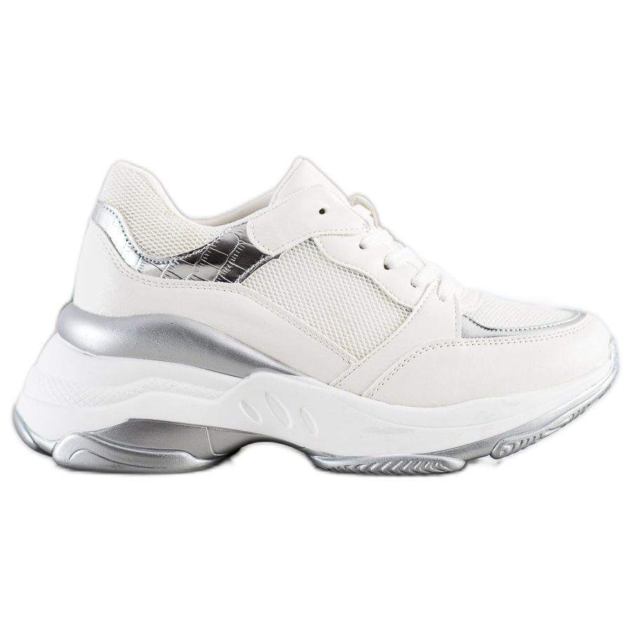 SHELOVET SHELOVET Stylové BÍLÉ A STŘÍBRNÉ tenisky bílý stříbrný