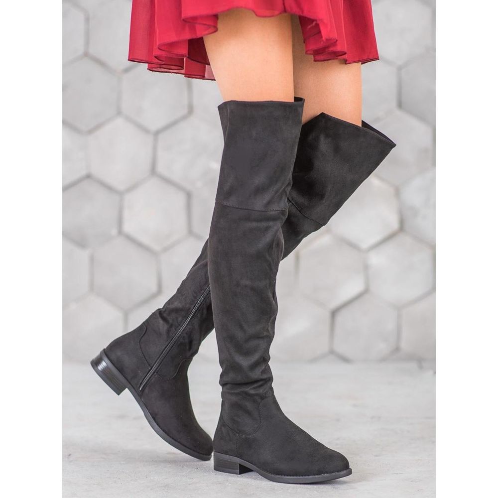 SHELOVET Stylové boty nad kolena černý