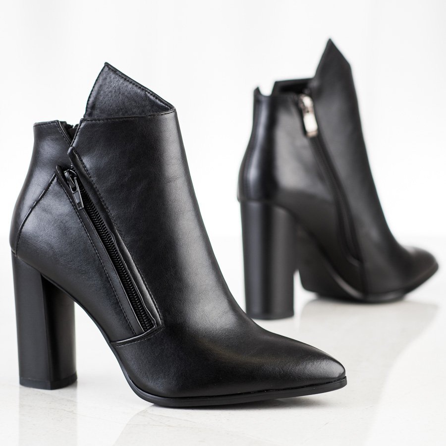 Kotníkové boty z ekologické kůže s moderním designem, v klasické černé barvě, skvěle zapadají do aktuálních trendů. Jejich elegantní charakter podtrhuje ozdobný zip, který dodává jedinečný styl. Svršek vysoký 9 cm a široký 22 cm dovedně odhaluje kotník a kulatá špička zajišťuje pohodlné nošení.