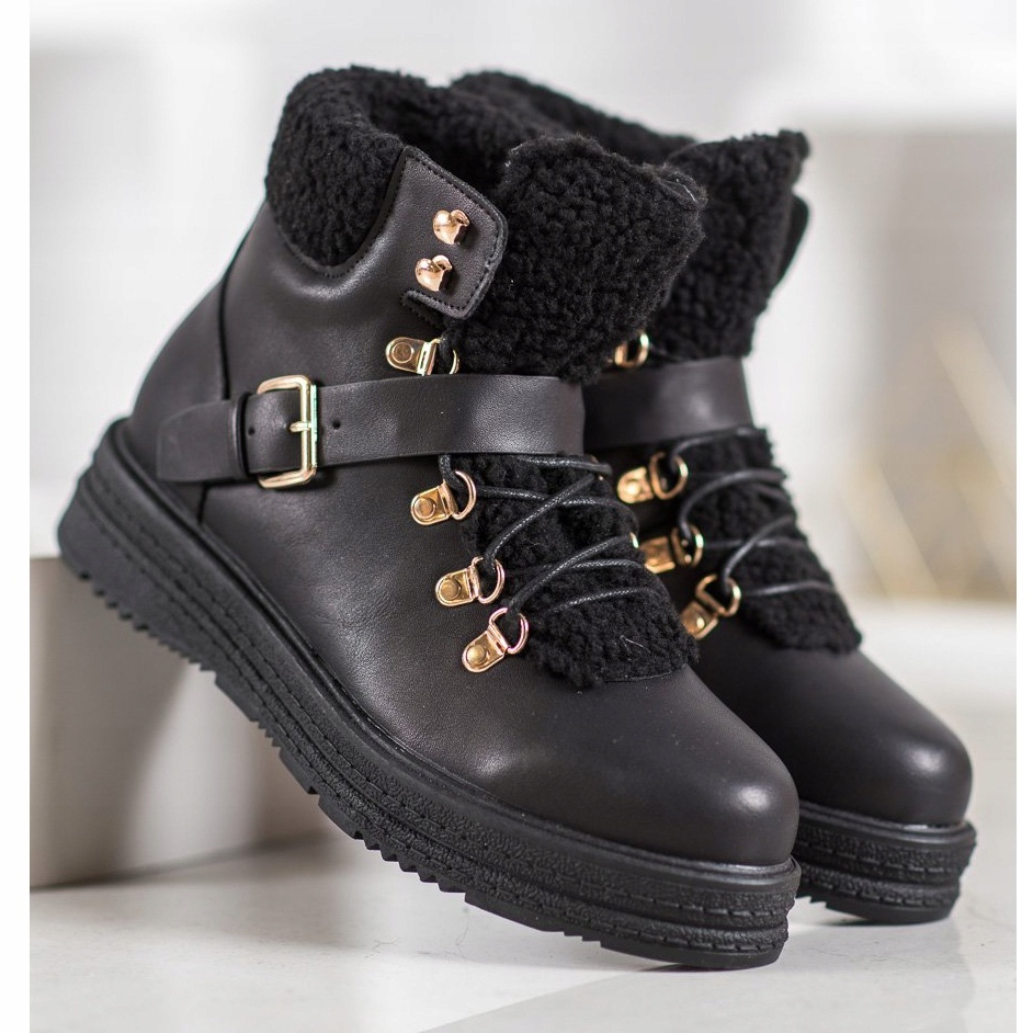 Boty mají šněrování, díky kterému se dokonale přizpůsobí tvaru nohy a zajistí tak komfort nošení. Zajištěné svrškem z ovčí kůže a ozdobnou sponou přitahují pozornost a dodávají charakter každému stylu. Podešev s nášlapem zajišťuje stabilitu a pohodlí při chůzi a výška podpatku 3-5 cm usnadňuje dlouhodobé používání bez pocitu únavy.