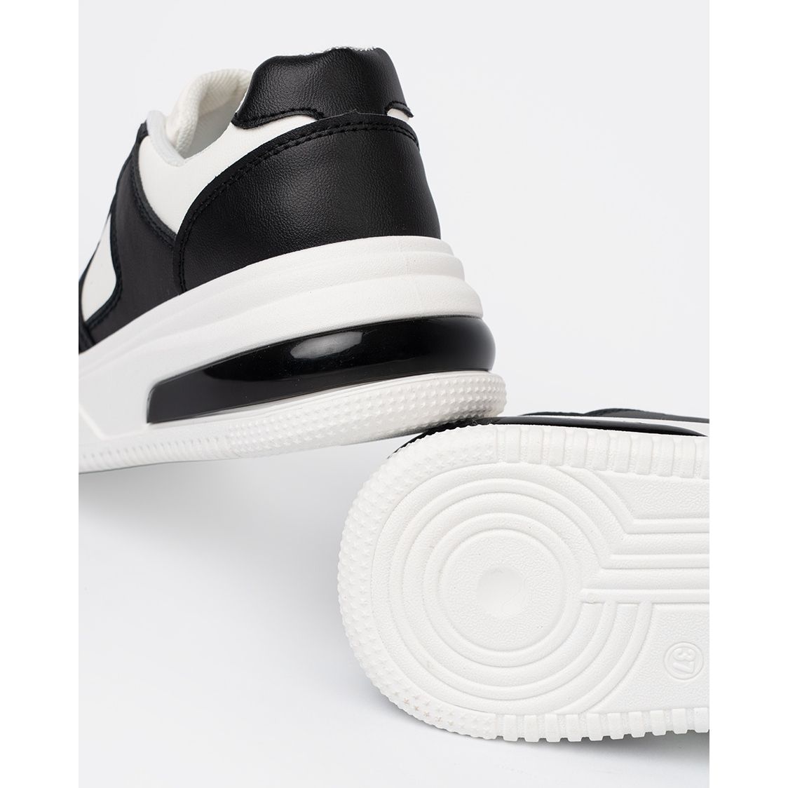 Černobílé barvy jsou velmi univerzální, což vám umožní snadno porovnat mnoho outfitů. Horní napodobení napodobování kůže a textilního obložení zaručuje nejen estetiku, ale také odolnost a pohodlí. Kulatý nos je prvek, díky kterému jsou boty velmi pohodlné pro nohy.
