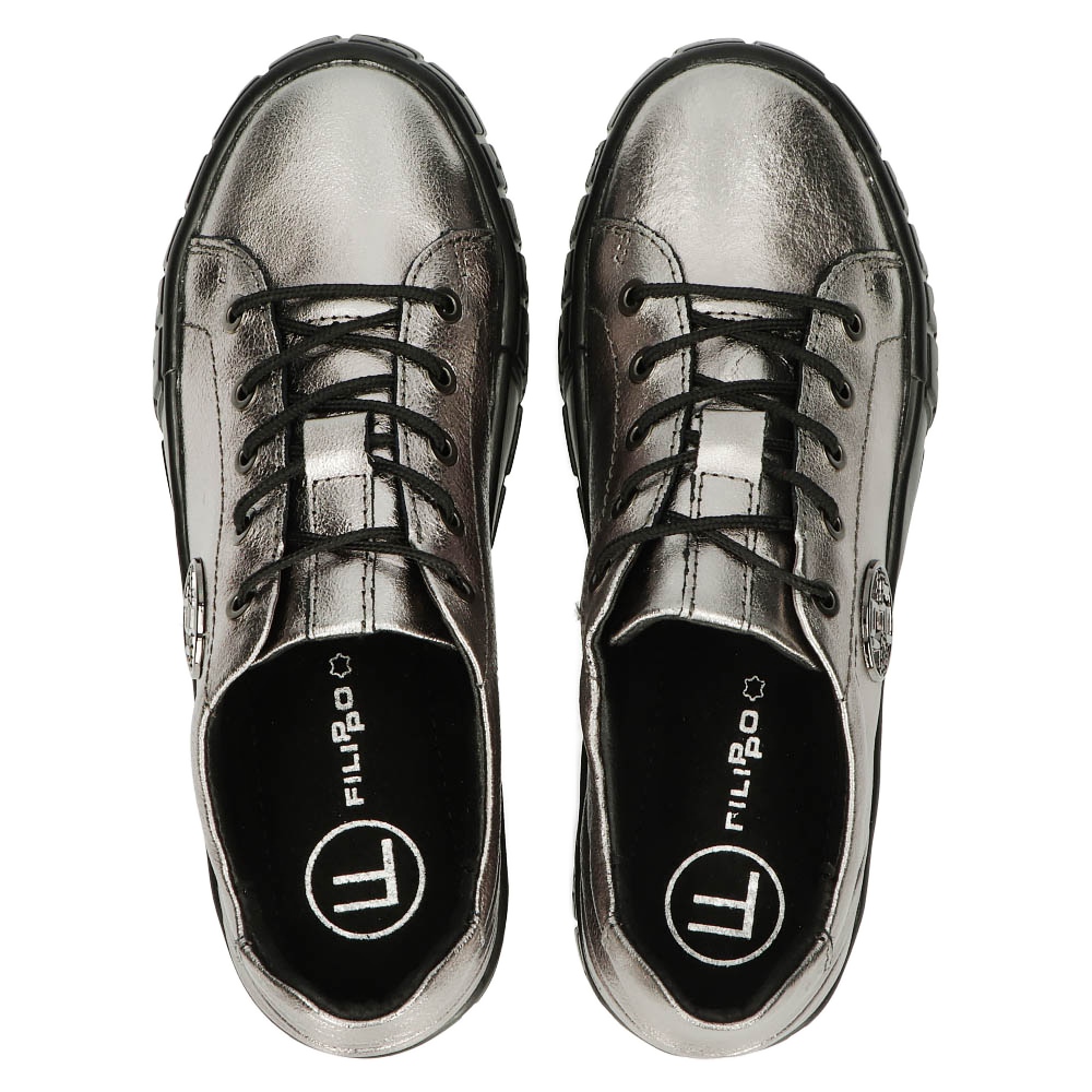 Objevte doplněk svého jarního a letního šatníku se stylovými koženými teniskami Filippo DP3528/22 GN v odstínu Gun Metal. Tyto jedinečné boty se vyznačují metalickou hnědou barvou, která dodá lesk každému stylingu. Skvěle ladí jak s jasnými topy, vzdušnými květinovými šaty, tak s džínovými šortkami a do každodenních outfitů vnášejí lehkost a dívčí šarm.