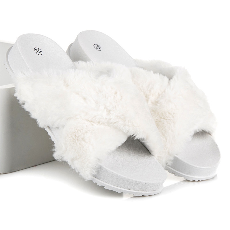 Podrobnosti: Stylové kožešinové pantofle bílý