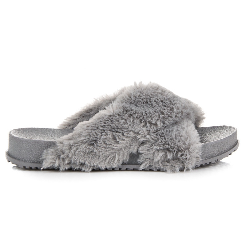 Podrobnosti: Stylové kožešinové pantofle šedá