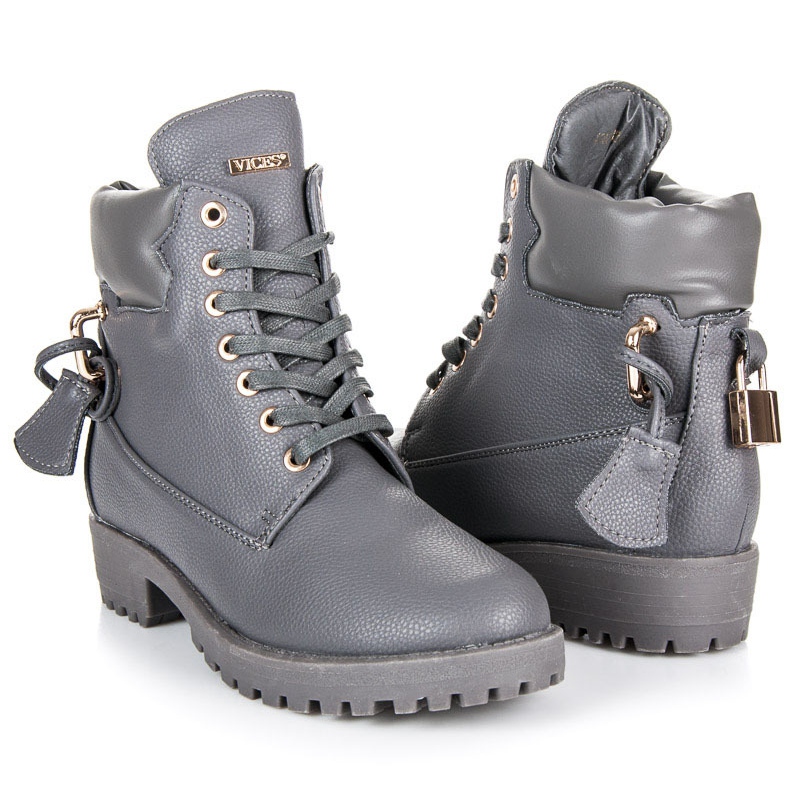 Stylové šedé kozačky z kolekce Vices New Collection jsou perfektní volbou pro chladnější dny. Tyto elegantní kotníkové boty jsou vyrobeny z vysoce kvalitní eko kůže, díky čemuž jsou odolné a šetrné k životnímu prostředí. Zateplení přikrývky obuvi poskytuje pohodlí a teplo i v zimních dnech a měkká stélka navíc zvyšuje komfort nošení.