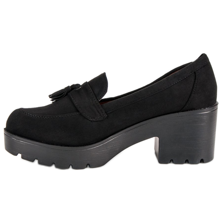 Tyto mokasíny vyrobené z vysoce kvalitního ekologického semiše se vyznačují jemným zdobením v podobě třásní, které jim dodávají jedinečné kouzlo. Vybaveny stabilním blokovým podpatkem vysokým 7 cm a platformou 2,5 cm spojují eleganci a pohodlí, takže je můžete nosit celý den.