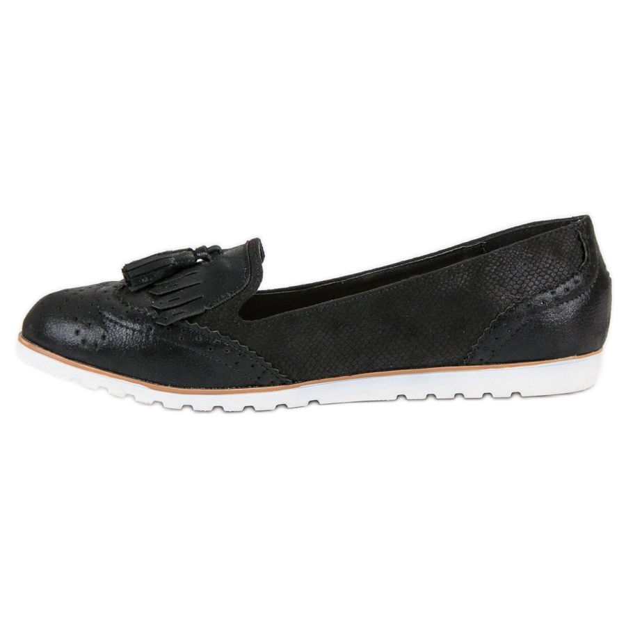 Objevte eleganci a pohodlí s mokasíny Super Me, které jsou perfektní volbou pro každou moderní ženu. Tyto černé mokasíny, vyrobené z ekologické kůže, kombinují klasický styl s nádechem moderny, díky čemuž jsou dokonalým doplňkem každodenního i sofistikovanějšího stylu.