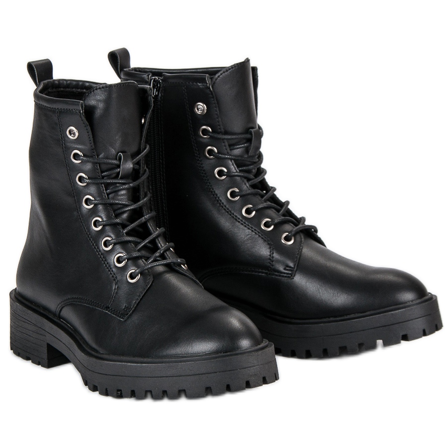 Tyto černé pracovní boty na plochém podpatku se vyznačují elegantním ležérním stylem, který je ideální pro každodenní neformální situace. Plastová podrážka s nášlapem zaručuje vynikající přilnavost a stabilitu a textilní stélka zajišťuje pohodlí i po dlouhé hodiny.