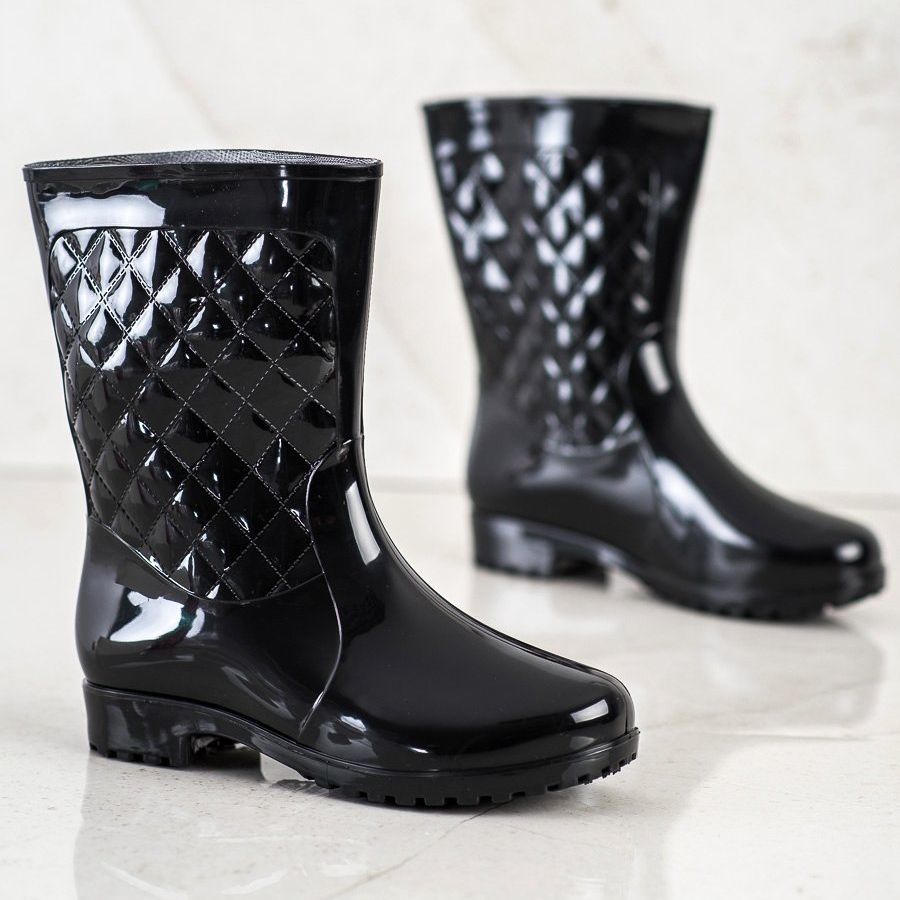 SHELOVET Stylové prošívané černé holínky - Vaši spolehliví společníci pro deštivé dny