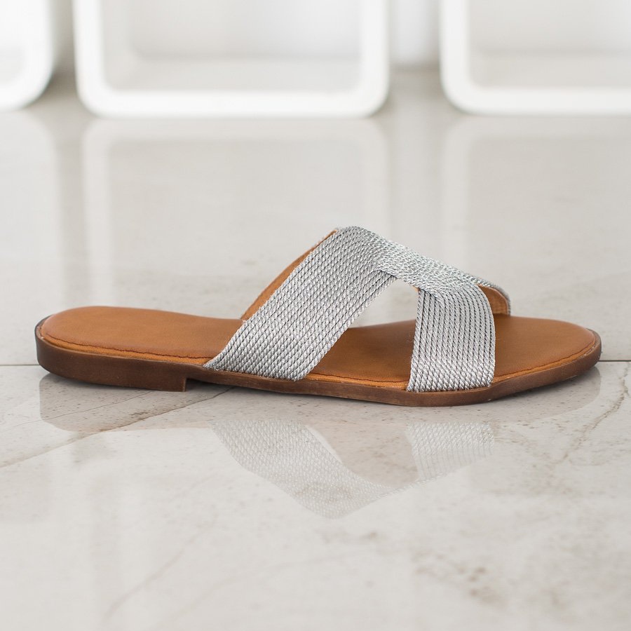 SHELOVET SHELOVET Stylové stříbrné pantofle šedá