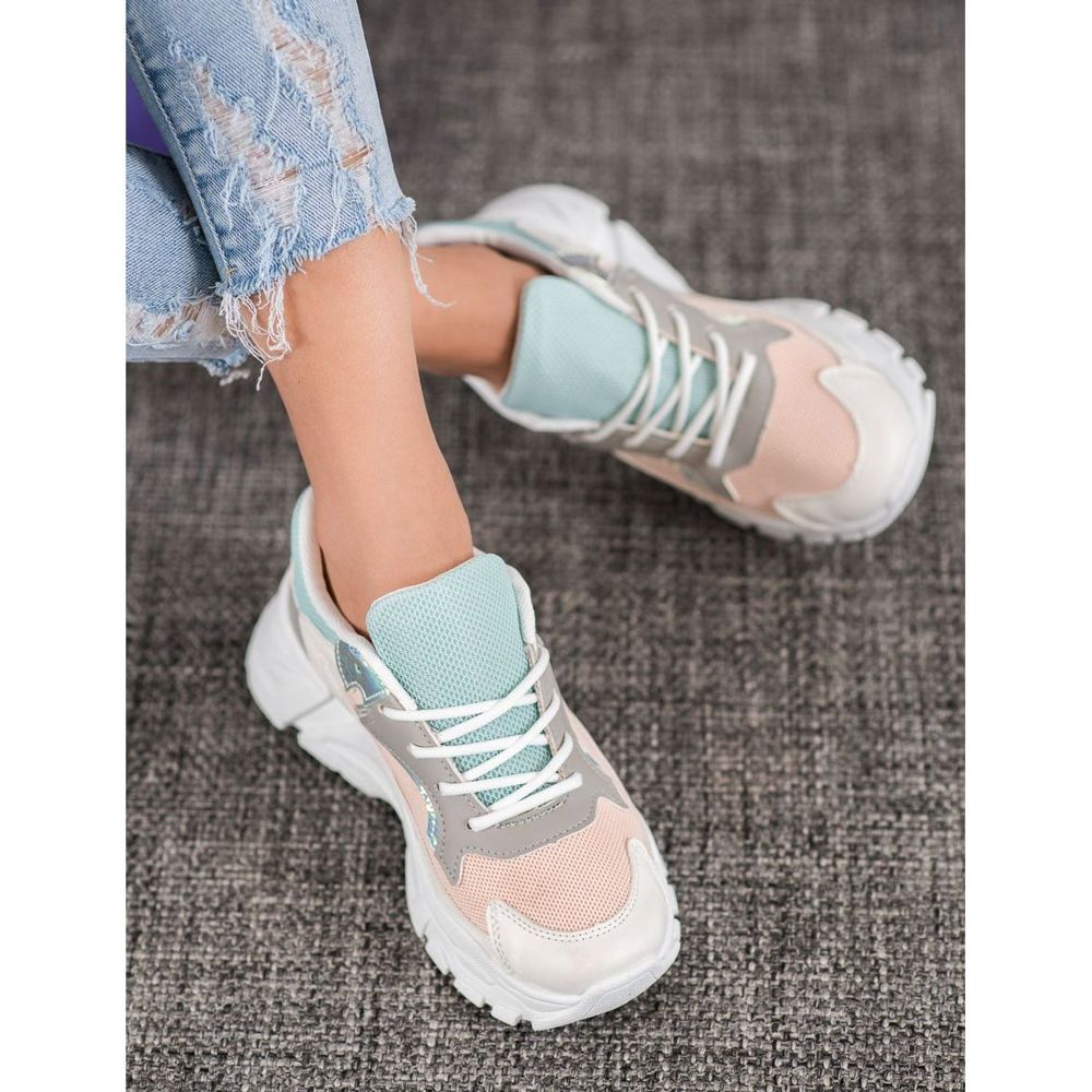 SHELOVET SHELOVET Stylové tenisky na platformě bílý modrý růžový šedá