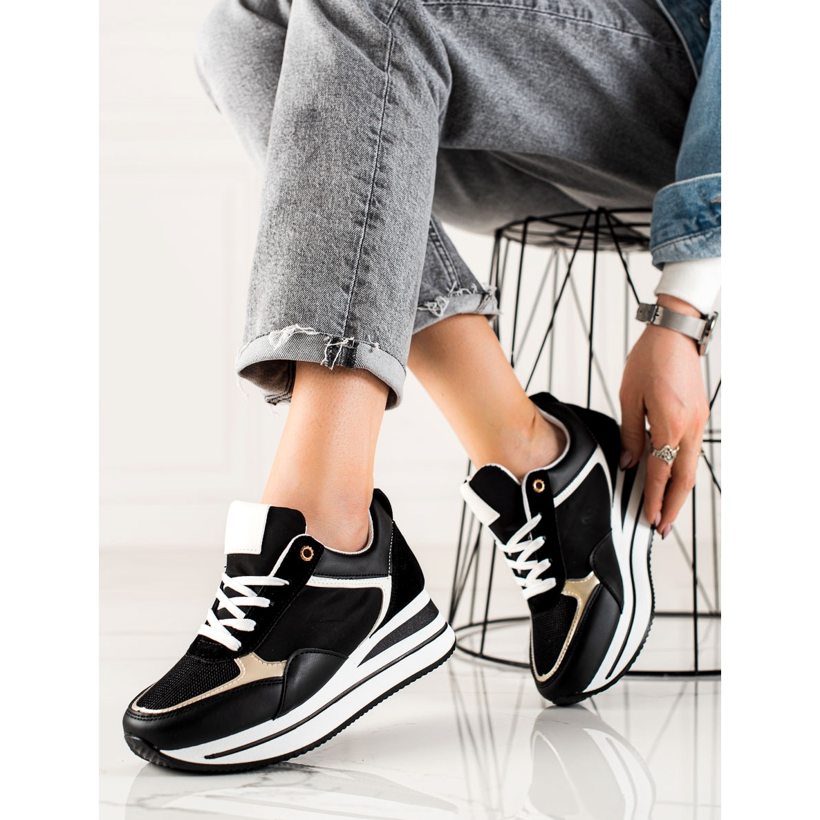 Stylové tenisky na platformě TRENDI v černé barvě jsou perfektní volbou pro ženy, které oceňují módu a pohodlí každý den. Tyto mimořádné boty kombinují nekonvenční design a funkčnost, díky čemuž jsou ideální pro ležérní i módní styly.