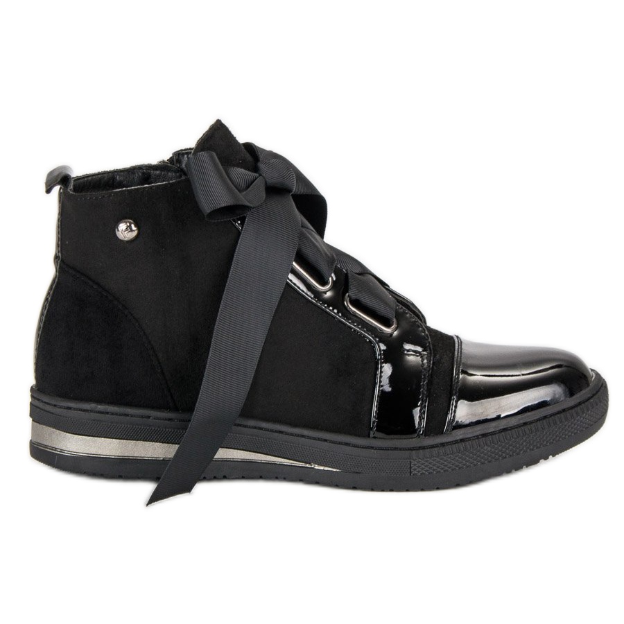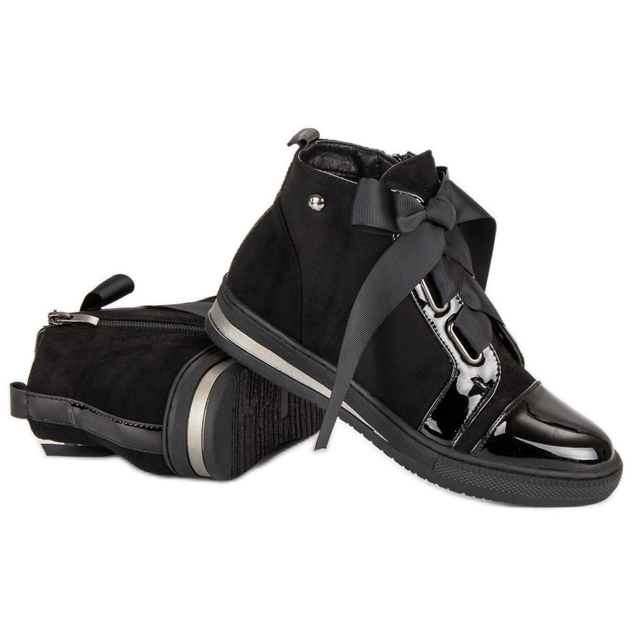 Jedná se o stylové vysoké tenisky od Filippo, které kombinují eleganci a sportovní ležérnost, ideální pro každodenní nošení. Tyto černé boty vyrobené z kombinace lakované koženky a semiše se hodí pro každé roční období. Vnitřek lemovaný kožešinou zajišťuje tepelný komfort, což z nich dělá perfektní volbu na podzim a zimu.