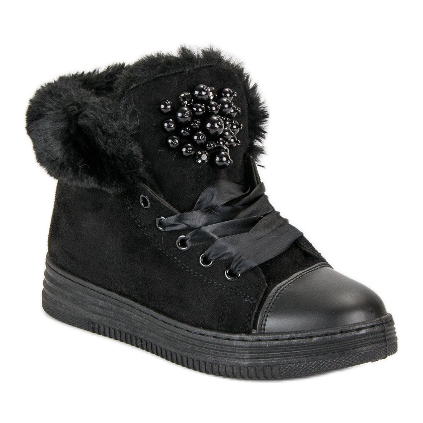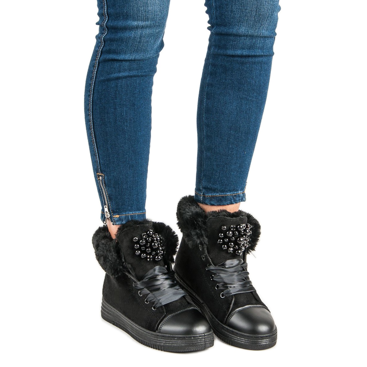 Charakteristický černý svršek zdobí jemná kožešina, která nejen podtrhuje styl tenisek, ale také poskytuje pohodlí a teplo. Díky malé 3,5 cm vysoké platformě a gumové podrážce se každý krok stane potěšením a zaručí stabilitu na různých površích.
