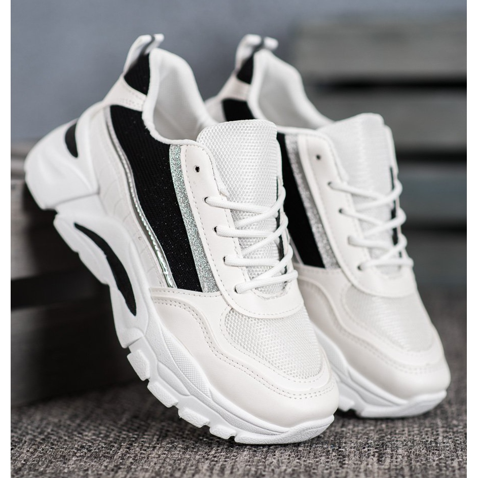 SHELOVET Stylové tenisky s třpytkami bílý černý