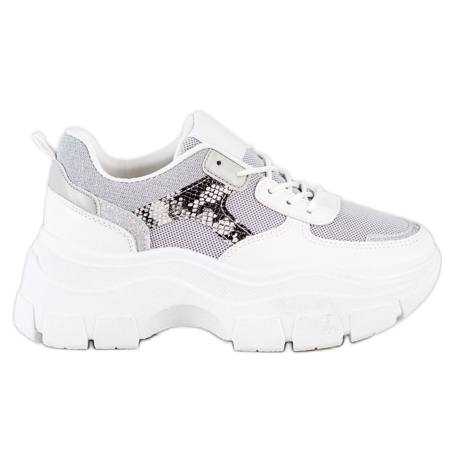 SHELOVET Stylové tenisky s třpytkami bílý stříbro šedá