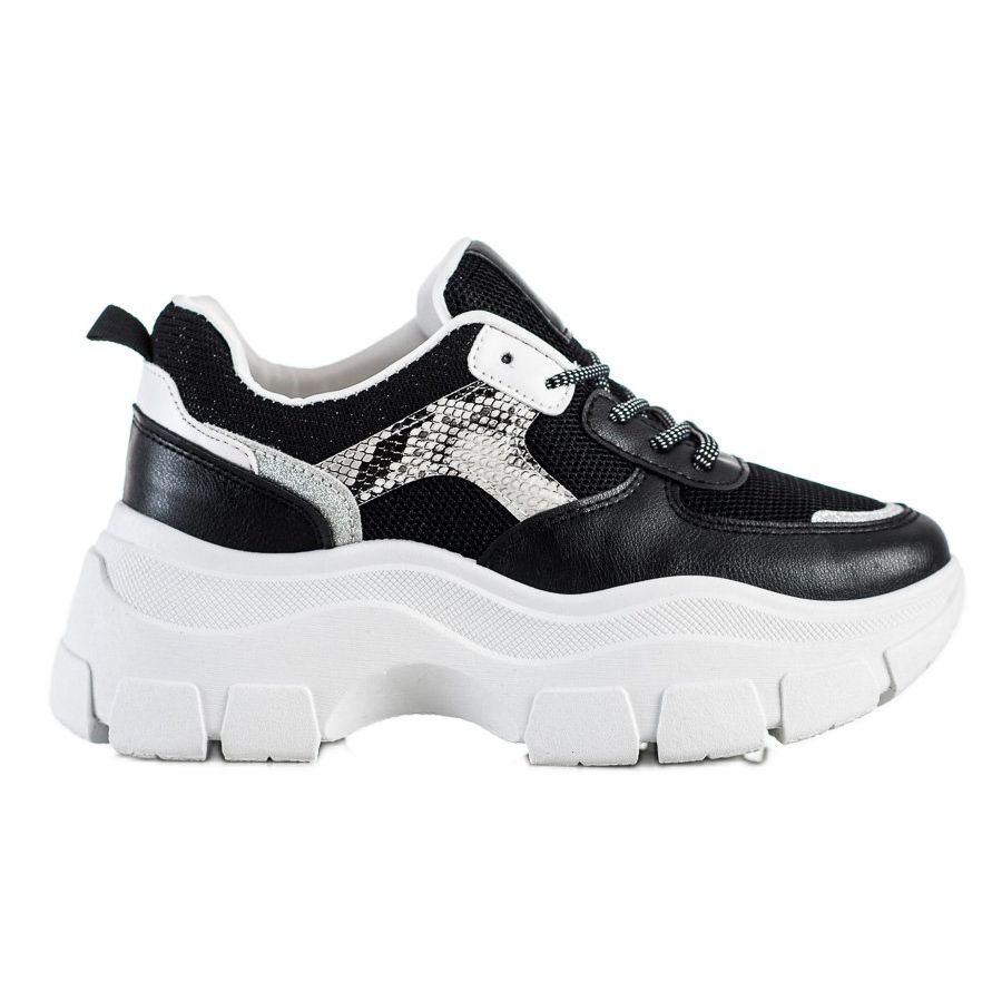 Stylové tenisky SHELOVET se třpytkami v černé barvě jsou perfektní volbou pro ženy, které oceňují pohodlí a módní vzhled. Tyto sportovní boty dokonale odpovídají nejnovějším trendům, kombinují eleganci s pohodlím, což z nich dělá dokonalý každodenní doplněk.