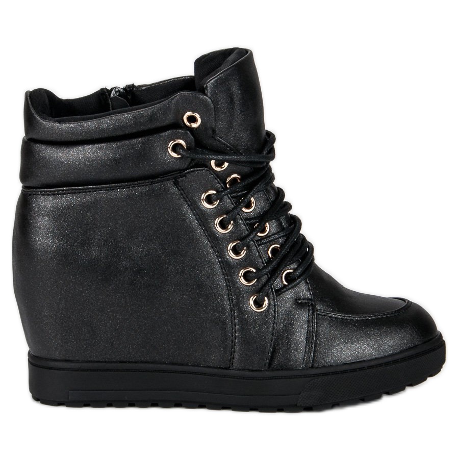 Tenisky jsou vyrobeny z kvalitního textilního materiálu s lesklým povrchem, který jim dodává jedinečný charakter. Díky přidání zipu a úpravě odolnými tkaničkami je běh v těchto botách čistým potěšením. Vysoký podpatek se skrytým klínkem o výšce 9 cm nejen opticky prodlouží nohy, ale zajistí i komfort nošení, což z nich dělá ideální volbu pro každodenní nošení.