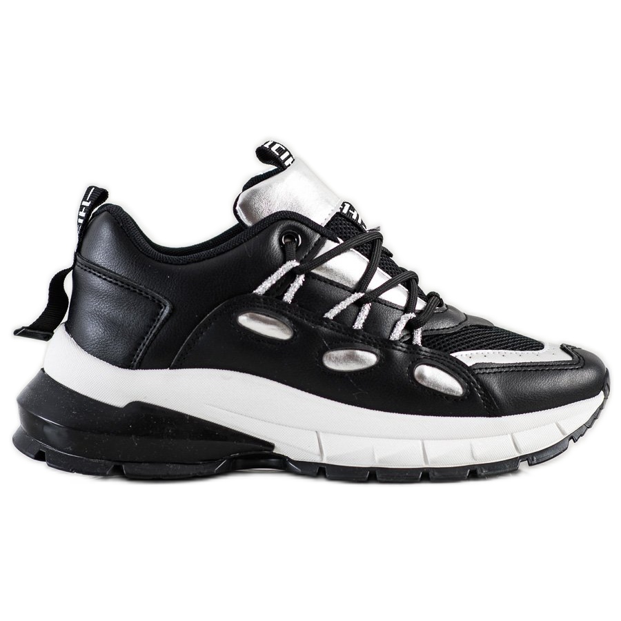 SHELOVET SHELOVET Stylové tenisky z ekologické kůže černá stříbrný