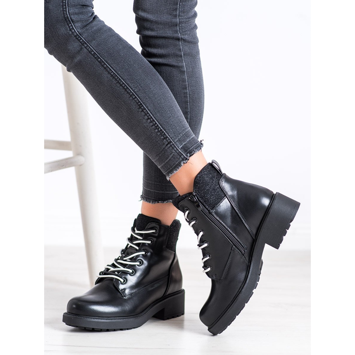 Podrobnosti: SHELOVET Stylové zavázané kozačky černý