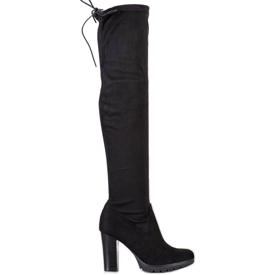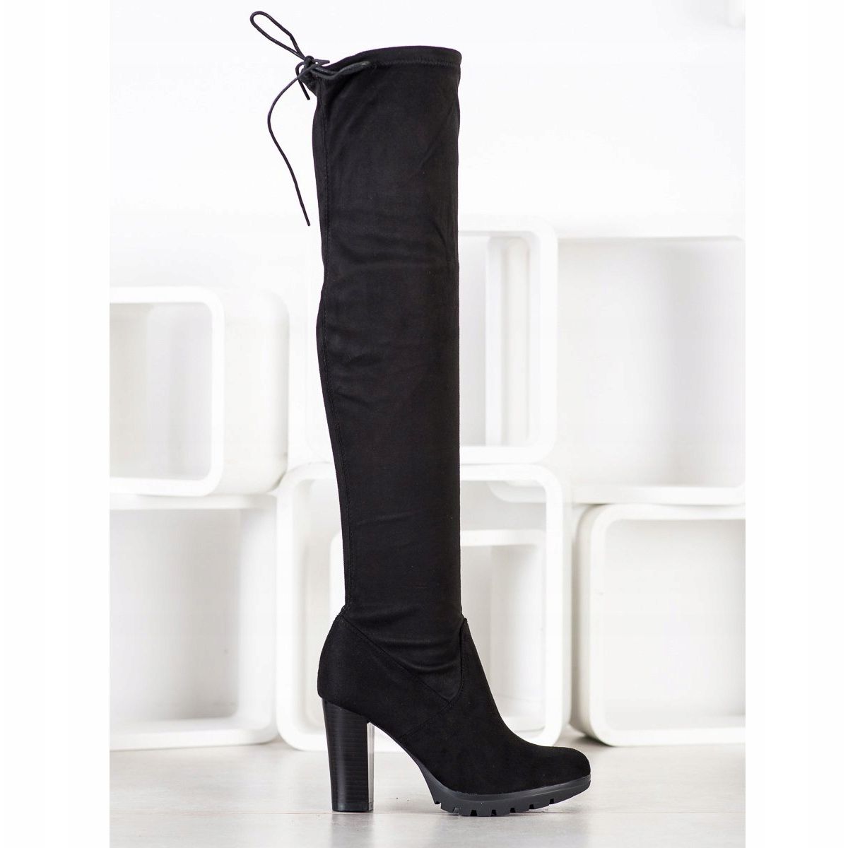 Stylová černá trička značky SHELOVET nesmí chybět v žádné kolekci dámské obuvi. Tyto elegantní boty jsou dokonalou kombinací pohodlí a sofistikovaného stylu, ideální pro různé příležitosti. Jsou vyrobeny z měkké ekologické imitace semiše, decentně se přizpůsobí tvaru nohou a jejich vysoký svršek, sahající nad kolena, vyniká úhlednými liniemi, které opticky zeštíhlují postavu.