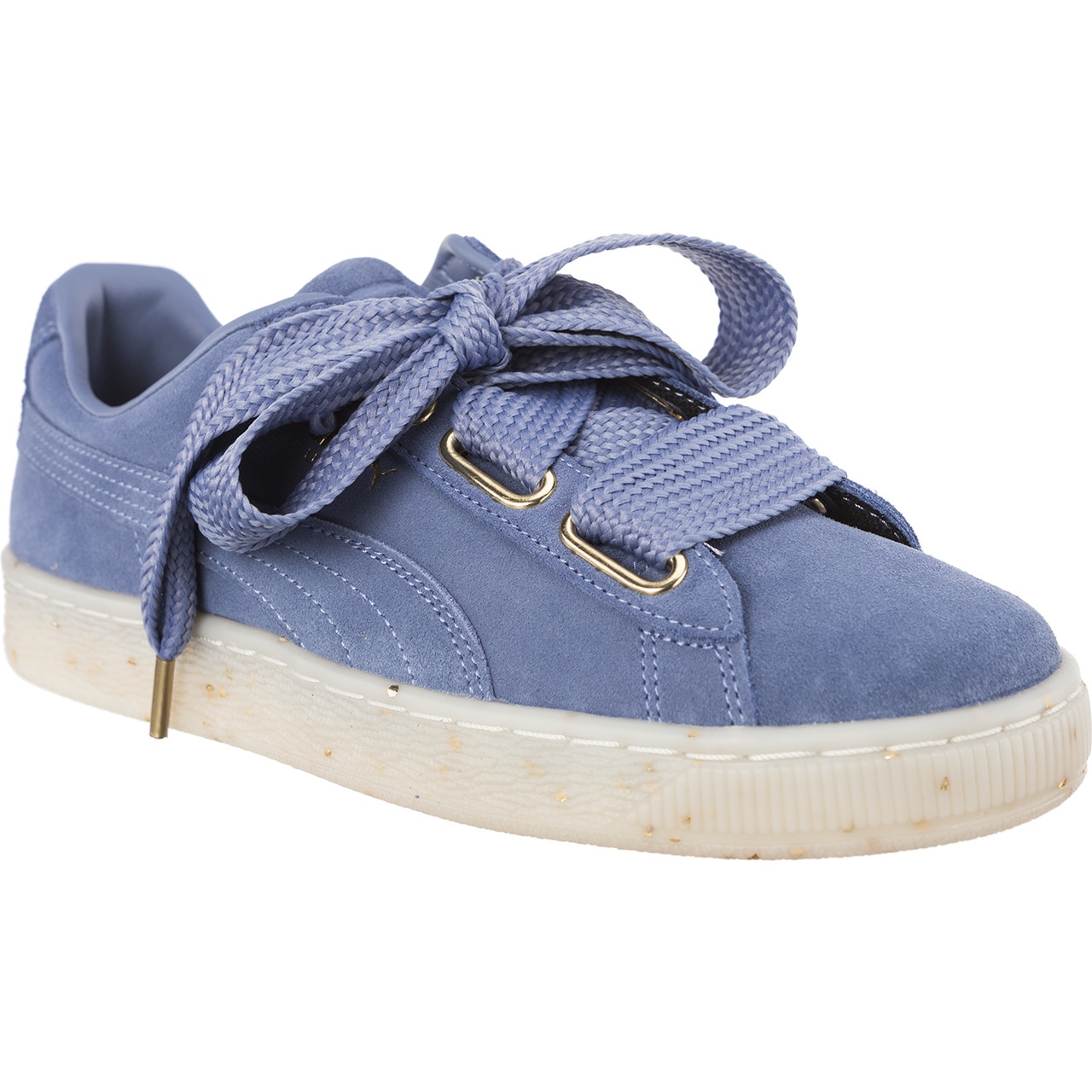 Stylové dámské tenisky v intenzivním odstínu Infinity Blue, které kombinují klasickou siluetu s dívčími detaily. Model Suede Heart Celebrate se vyznačuje zvětšenými tkaničkami a jemnými zlatými vločkami zasazenými do průhledné podrážky - ideální, pokud hledáte boty s charakterem, ale pohodlné pro každodenní nošení.