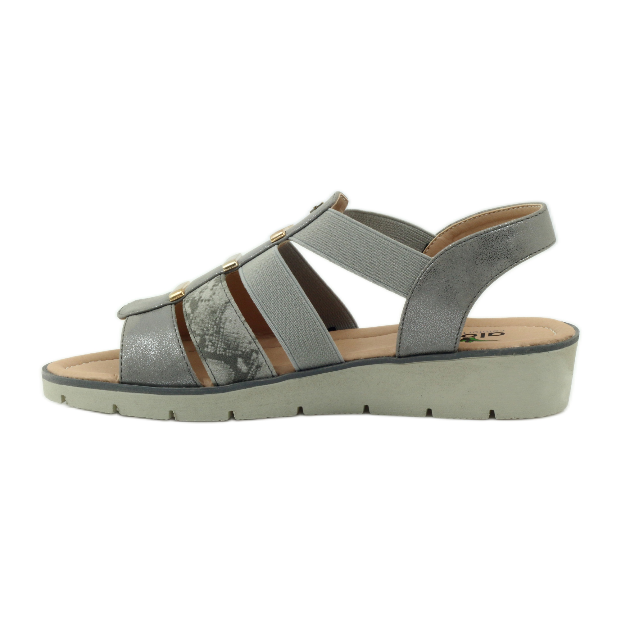Sandály AloeLoe jsou klasického střihu s 3,5 cm vysokým klínkem, který opticky prodlužuje nohy a zároveň zajišťuje stabilitu. Díky absenci nosu a nazouvacímu zapínání jsou extrémně praktické a snadno se nasazují. Kombinace šedé s elegantními zlatými dekoracemi a jemnými žlutými akcenty jim dodávají moderní charakter, který dokonale zapadá do módních trendů.