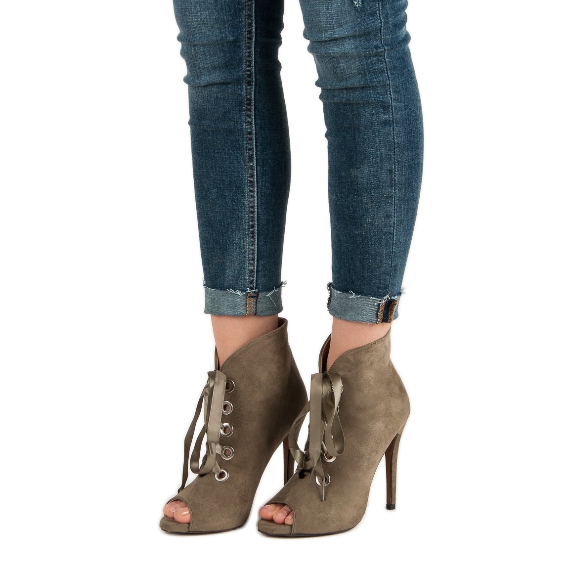 Bestelle Svázané boty s otevřenou špičkou zelený