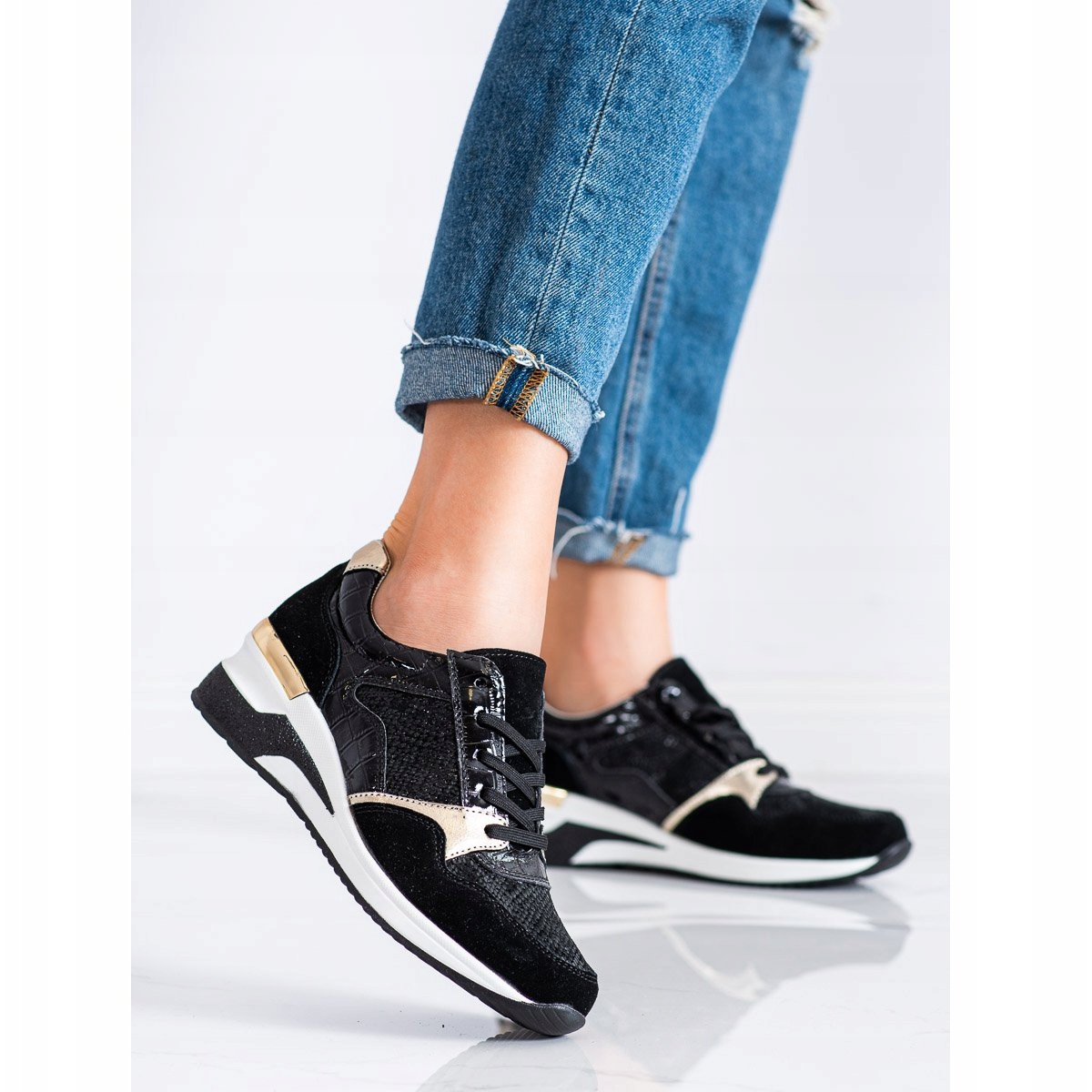 Představujeme šněrovací tenisky Goodin, které budou perfektní volbou pro každou aktivní ženu. Tyto elegantní, sportovní černé boty s vícebarevnými akcenty dokonale ladí s každodenním stylem a zajišťují pohodlí a styl zároveň.