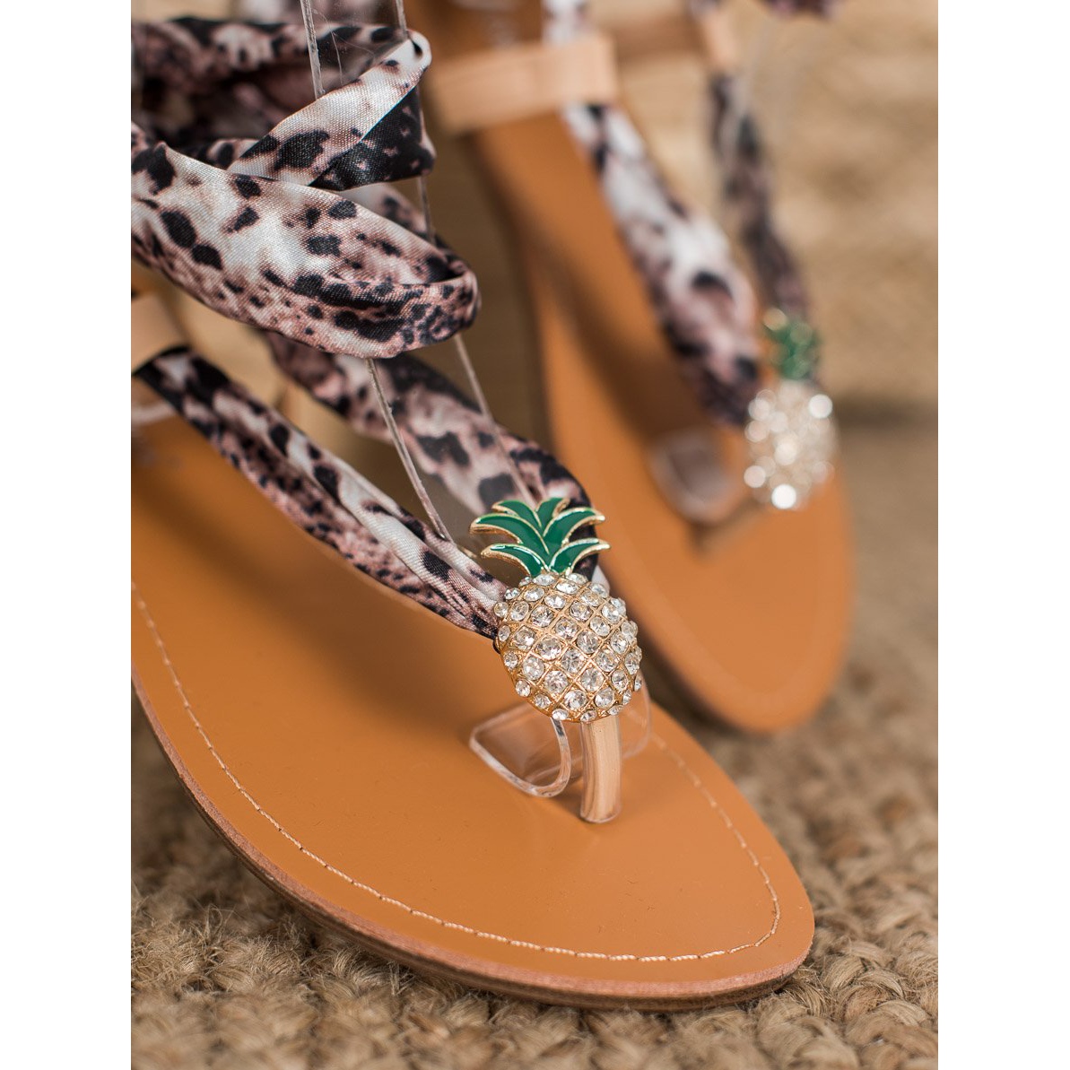 SHELOVET SHELOVET Svázané sandály s ananasem hnědý vícebarevný