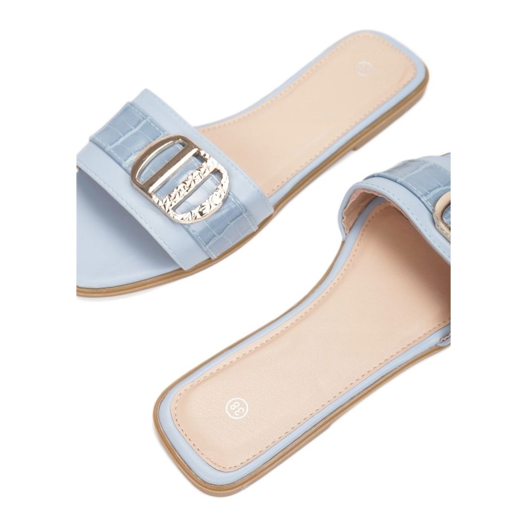 Zvláštní pozornost přitahuje ozdobný pás s drážkami, který imituje krokodýlí kůži a dodává eleganci a originalitu. Vyrobeno z ekologické kůže, vnější materiál i vložka zajišťují odolnost a komfort nošení. Díky syntetické podrážce jsou žabky lehké a pružné, díky čemuž je každý okamžik strávený v nich čistým potěšením.