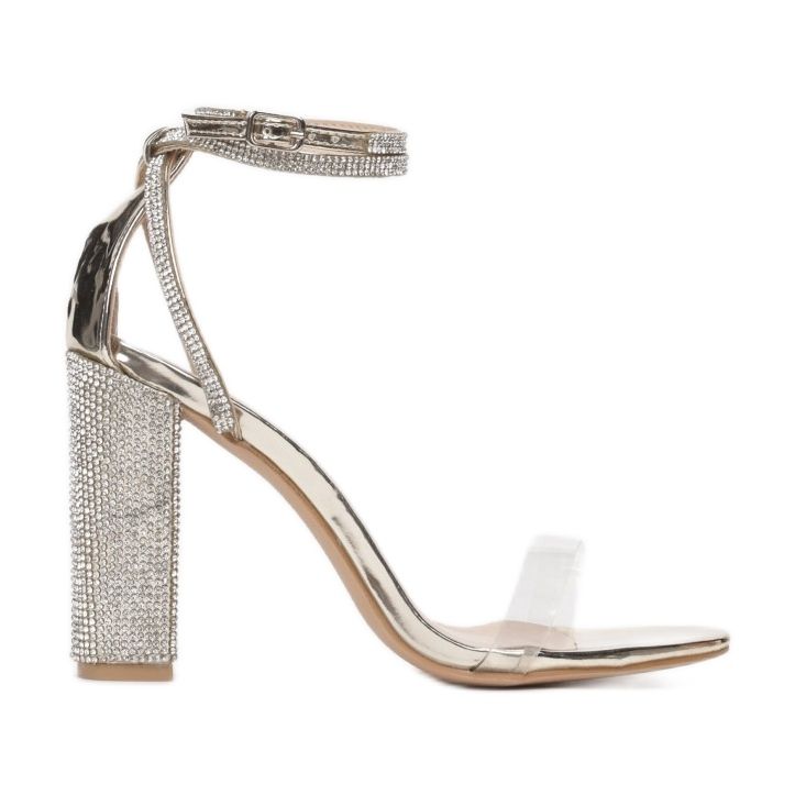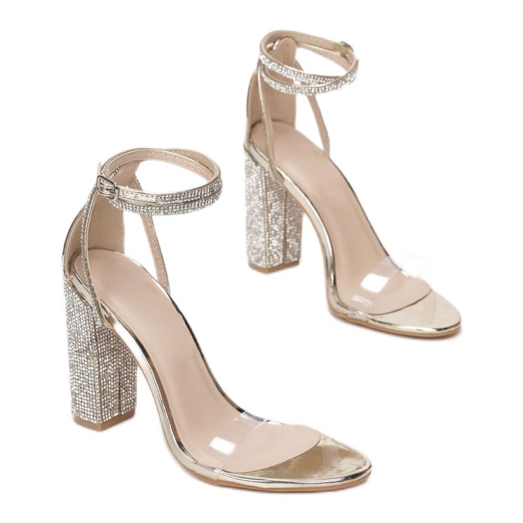 Výška podpatku 10,5 cm na základě blokového podpatku vám umožní přidat pár centimetrů výšky a zároveň zajistí pohodlí při chůzi. Zapínání na přezku usnadňuje nazouvání a vyzouvání a doplňkové prvky, jako jsou kamínky a kamínky, dodávají sandálům jedinečný charakter a lesk.