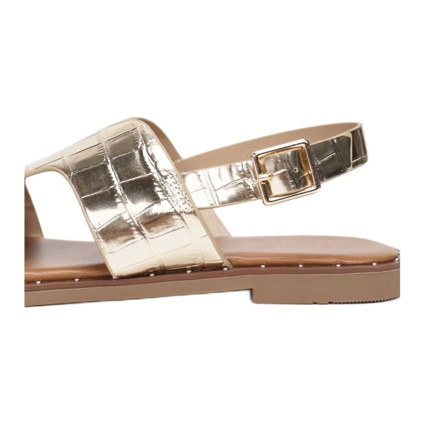 Zlaté sandály Vices 2016-6-60 jsou ideální nabídkou pro ženy, které oceňují pohodlí a eleganci. Vyrobeny z vysoce kvalitní ekokůže, vyznačují se svrškem s originálním embosováním imitujícím krokodýlí kůži, což jim dodává jedinečný styl a šik.